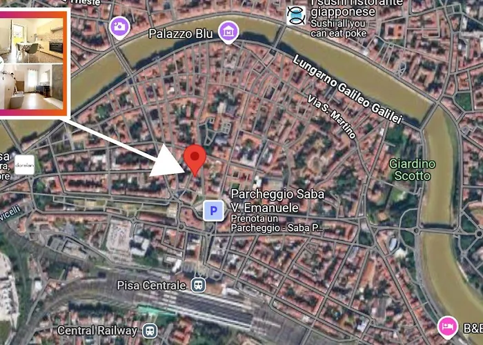 La Cathédrale de Pise se trouve dans une zone de 1 km, tandis que la Place Victor Emmanuel II se trouve assez proche de la résidence spacieuse. Le domicile de 150 m² est à environ 25 minutes à pied de marche de l'église San Michele degli Scalzi. Le Palazzo Blu se trouvent non loin de ce site. L'aéroport le plus proche est international Galileo-Galilei de Pise, à 5 km de cet appartement Domus Mazzini In Pisa Centro By Tuscanywego, et l'arrêt de bus Stazione 5 est à seulement 150 mètres.