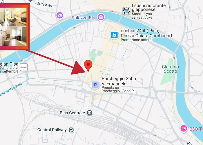 Церква св. Антонія знаходиться всього за 5 хвилин ходьби, а Палаццо Гамбакорті - всього за 0.7 км. На відстані 1.1 км від апартаментів Domus Mazzini In Pisa Centro By Tuscanywego знаходиться Площа лицарів. Найближчий аеропорт Міжнародний Пізи знаходиться за 5 км від апартаментів, а автовокзал Bonaini 1 - на відстані 5 хвилин їзди машиною.